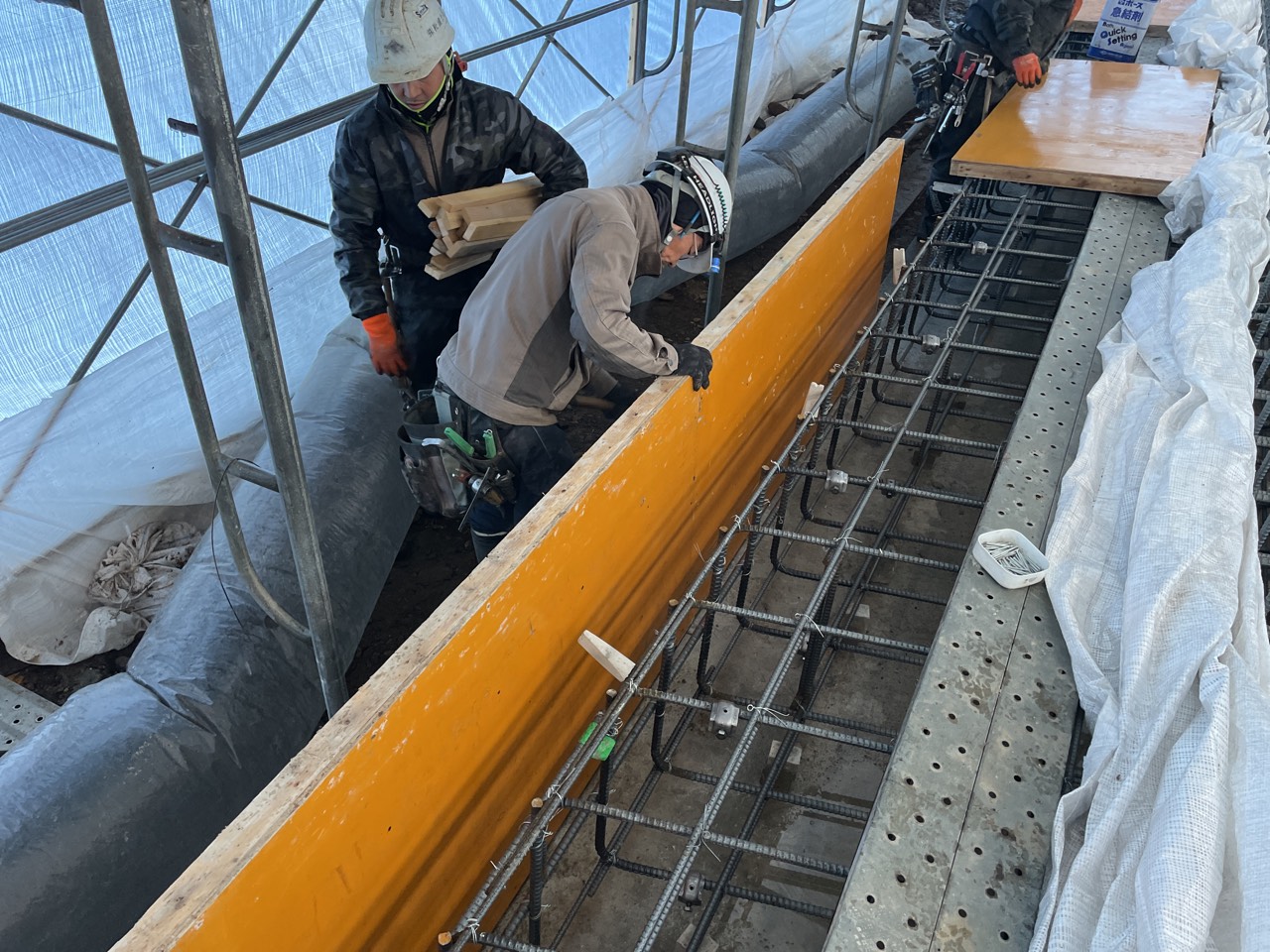 生コンを打つための枠をつける作業 他